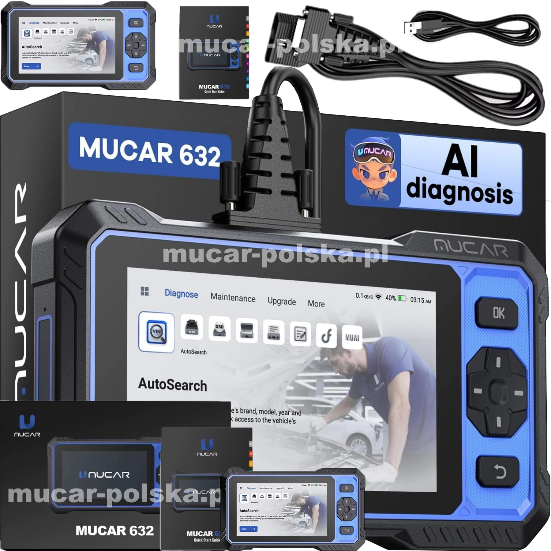 Mucar 632 to funkcjonalny i uniwersalny tester diagnostyczny, który łączy szerokie możliwości diagnostyczne z łatwością obsługi. Dzięki obsłudze wielu systemów pojazdu, podglądowi danych w czasie rzeczywistym oraz funkcjom serwisowym stanowi praktyczne narzędzie zarówno dla profesjonalnych mechaników, jak i użytkowników indywidualnych.