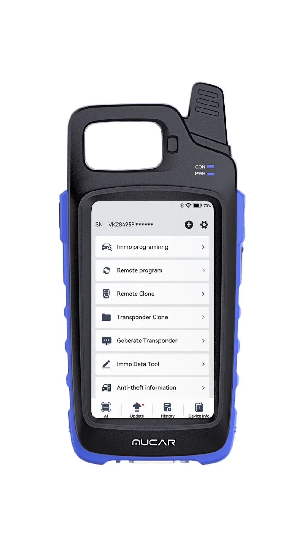 - Obsługa pilotów (RF): Pozwala na kopiowanie sygnałów bezprzewodowych centralnego zamka oraz precyzyjne testowanie częstotliwości pilotów (315/433/868/902 MHz).